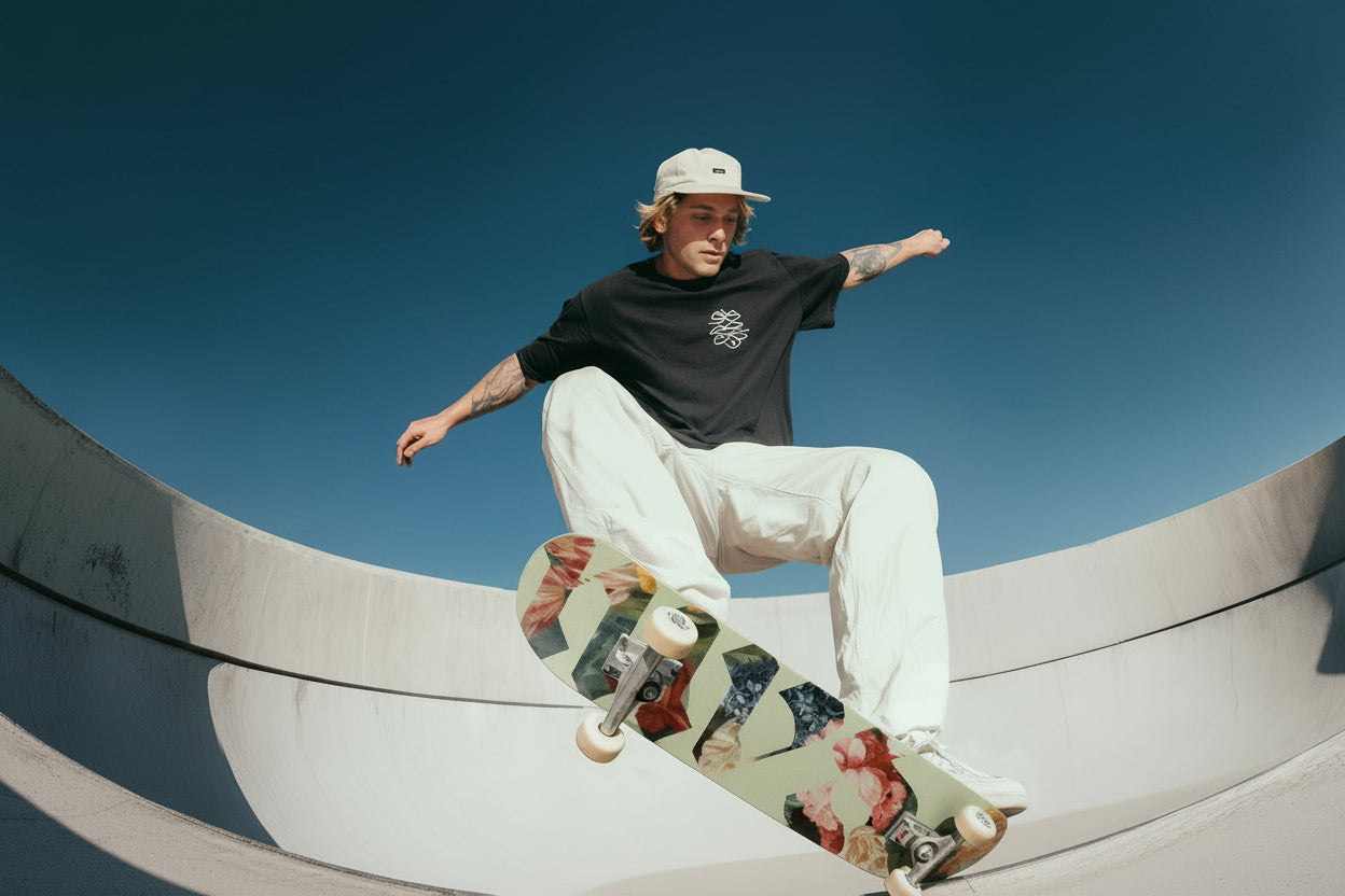 这部分的插画里还有一个巨大的广告牌,这张图片其实已经在这个网页里反复出现很多次了,这也是我上面通过链接获取到的那张图,可以看到这是一个叫 MVSE SKATE 品牌的宣传图,