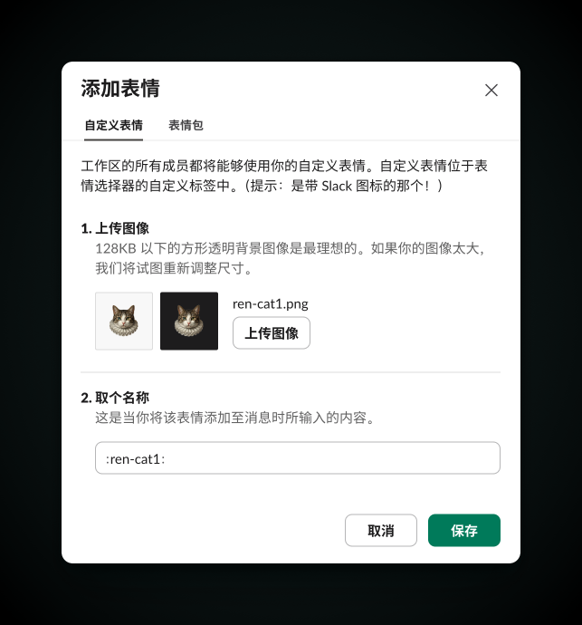 因此开发团队已经按照 Slack 的表情名称规则命名好了文件,这样在 Slack 添加时就会自动填入名称,省去了另外想名称的功夫。